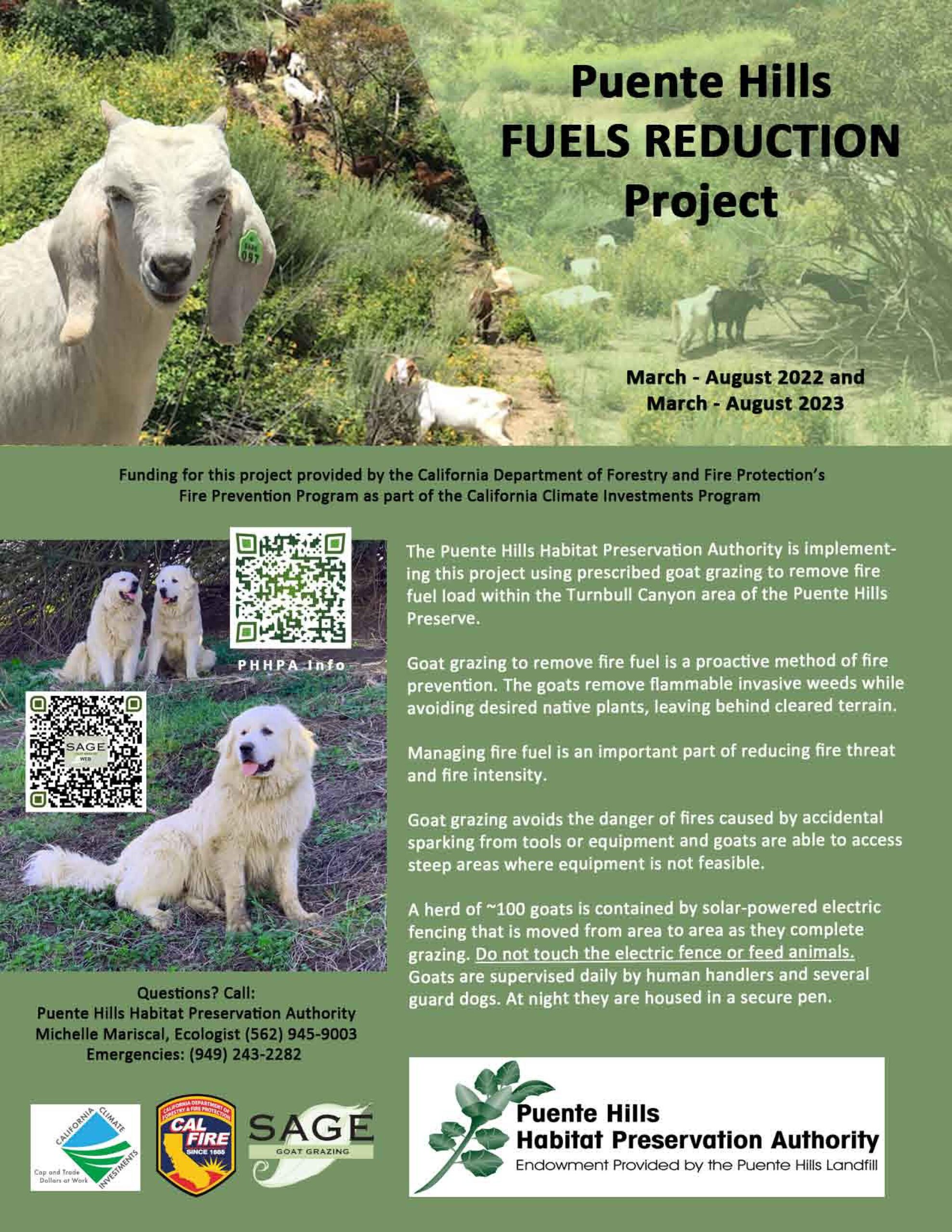 Funding for Puente Hills Fuels Reduction Project provided by the California Department of Forestry and Fire Protection’s Fire Prevention Program as part of the California Climate Investments Program